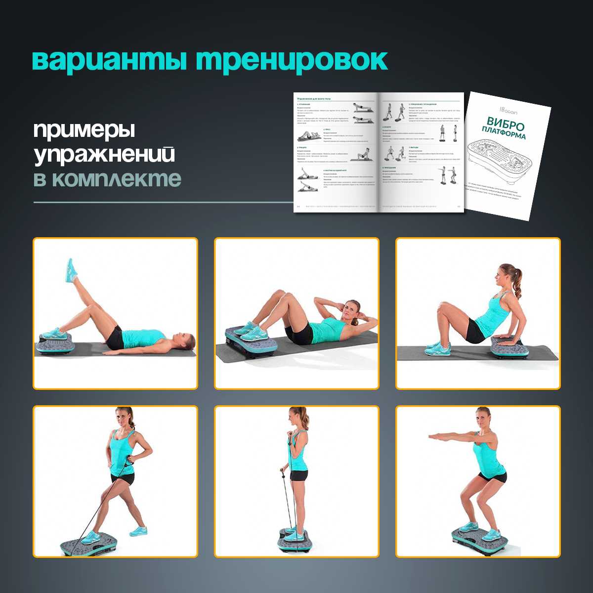 - Вибрация не заменяет активные кардио/силовые тренировки – результаты в сбросе веса возможны только в комбинации с диетой и фитнесом.