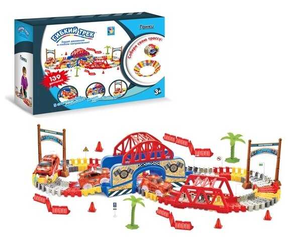 | Подробная комплектация : | 139 деталей: мост-туннель, мост, арка, дорожные знаки, машинка, трасса |