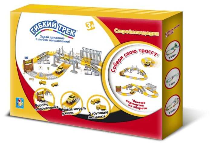 | Подробная комплектация : | детали для трека, джип, 2 дополнительные машинки строительной техники, ворота, мост, камень, дорожные знаки |