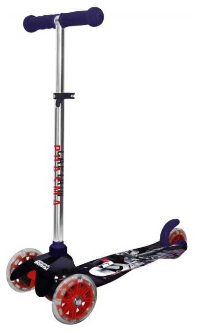 Самокат покупался для сына, он очень активный ребенок, любит гулять на улице целыми днями. Решили его активную энергию направить в спортивное русло, чтоб не только развлекался , но и развивался физически. Самокат прочный, надежный, ребенок стоит на нем крепко. Руки с руля не соскальзывают, ручки не натирают. Хорошо что можно отрегулировать высоту руля, так сказать хватит на вырост. Едкого запаха резины или пластика от самоката нет, значит материалы для ребенка безопасны. В общем, покупкой довольны, советуем.