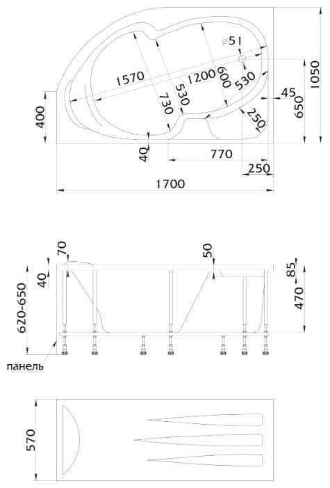 Отзывы о Ванна 1Marka Diana 170x105 с каркасом, без гидромассажа акрил угловая