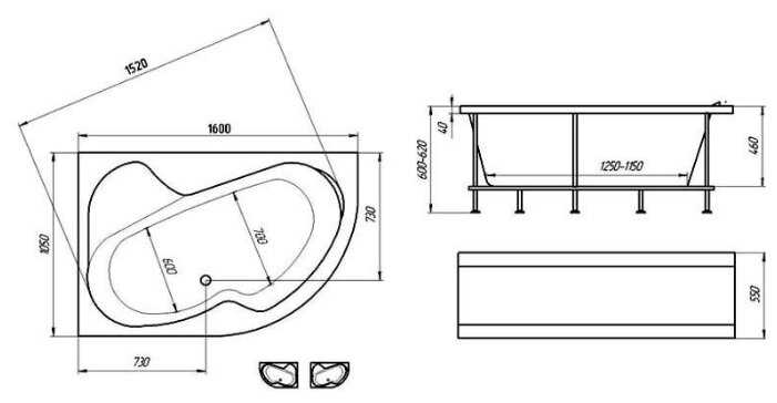 Я покупкой довольна. Форма нестандартная, выглядит аккуратно, размеры полностью соответствуют действительности. Ванна глубокая, хотя само дно не такое большое, но одному человеку находится весьма комфортно. Дополнительно ничего не заказывала, не было необходимости.