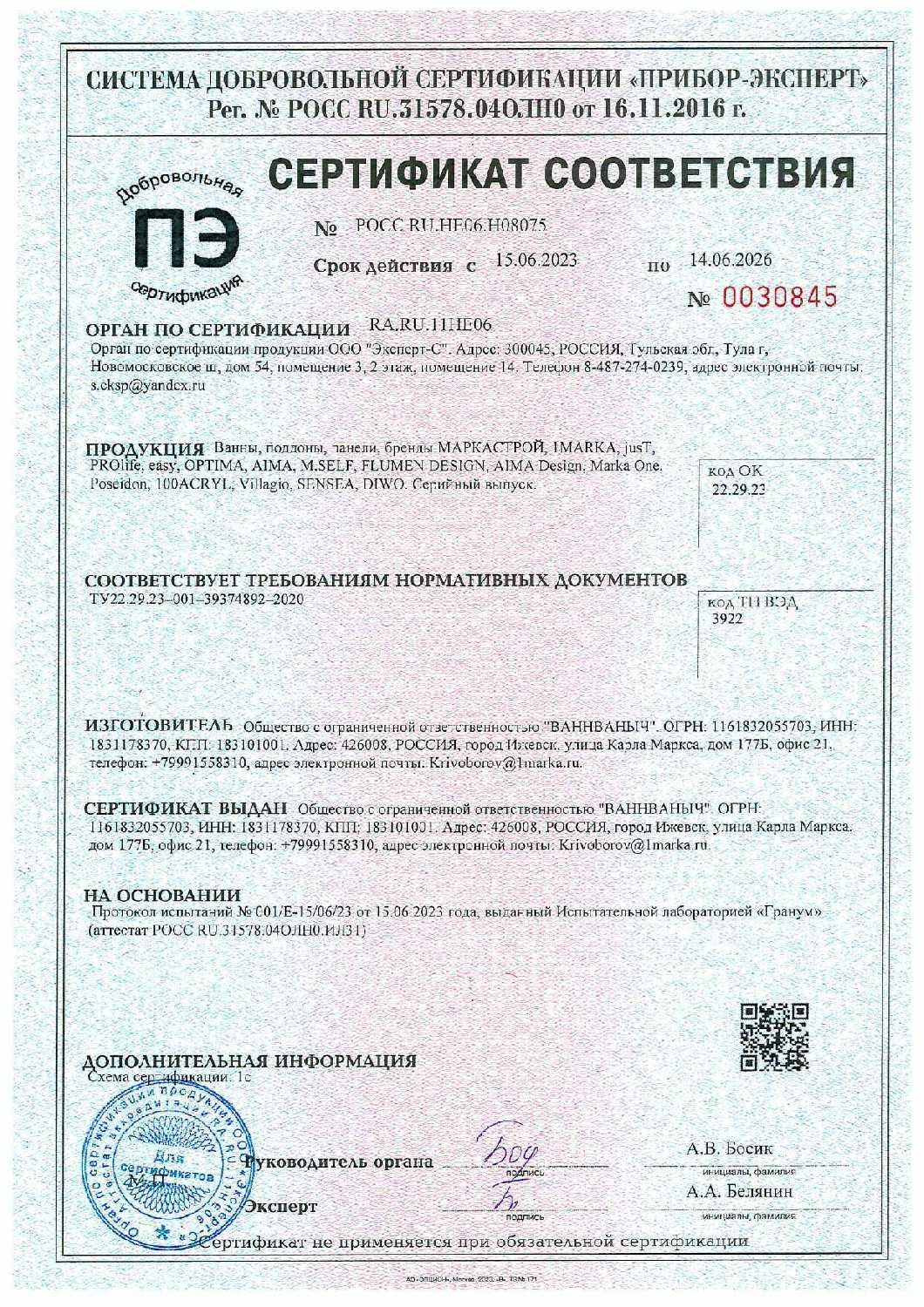 Характеристи 1Marka Ванна (1700x700)