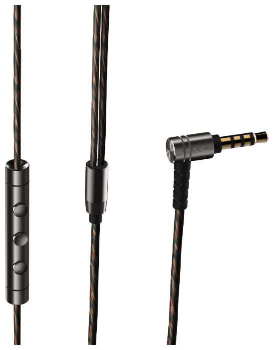 - Кевларовый провод с нейлоновой оплеткой (длина 1.25 м) имеет уголковый позолоченный разъем 3.5 мм, снижающий нагрузку на гнездо.