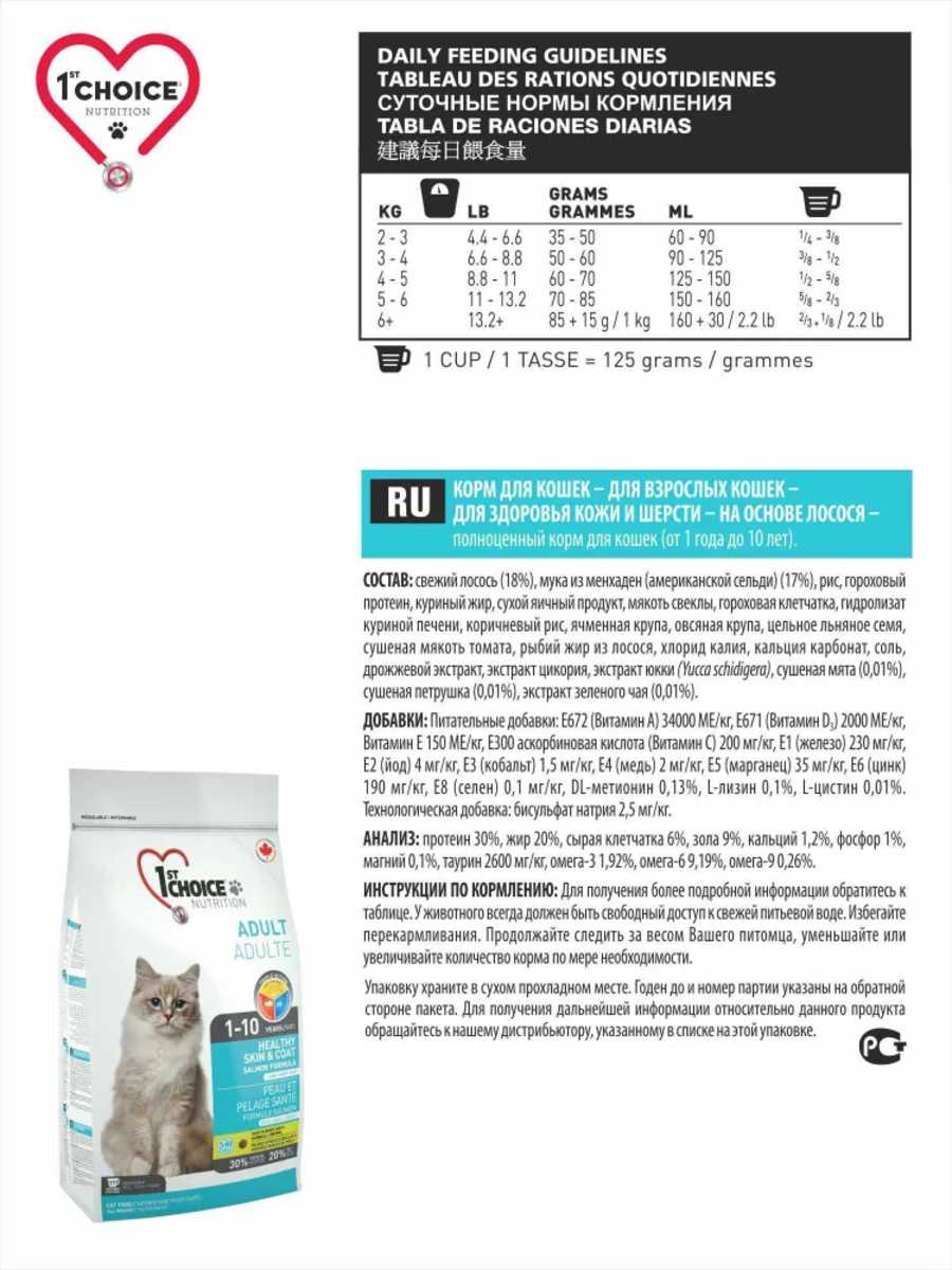 - Формула корма разработана для поддержания здоровья кожи, что подтверждается эмпирическими данными от владельцев кошек с диагностированными дерматологическими проблемами.