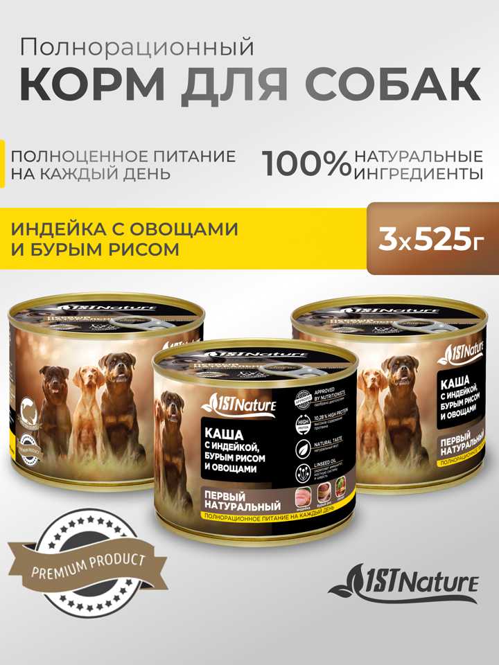 Отзывы о Влажный корм для собак 1ST Nature Первый Натуральный Каша с индейкой, бурый рис и овощами
