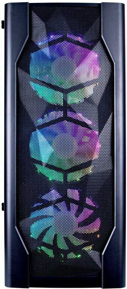 - Комплектные RGB-вентиляторы 120 мм обеспечивают стабильный воздушный поток, снижая температуру процессора до 65°C в простое и 78°C под нагрузкой.