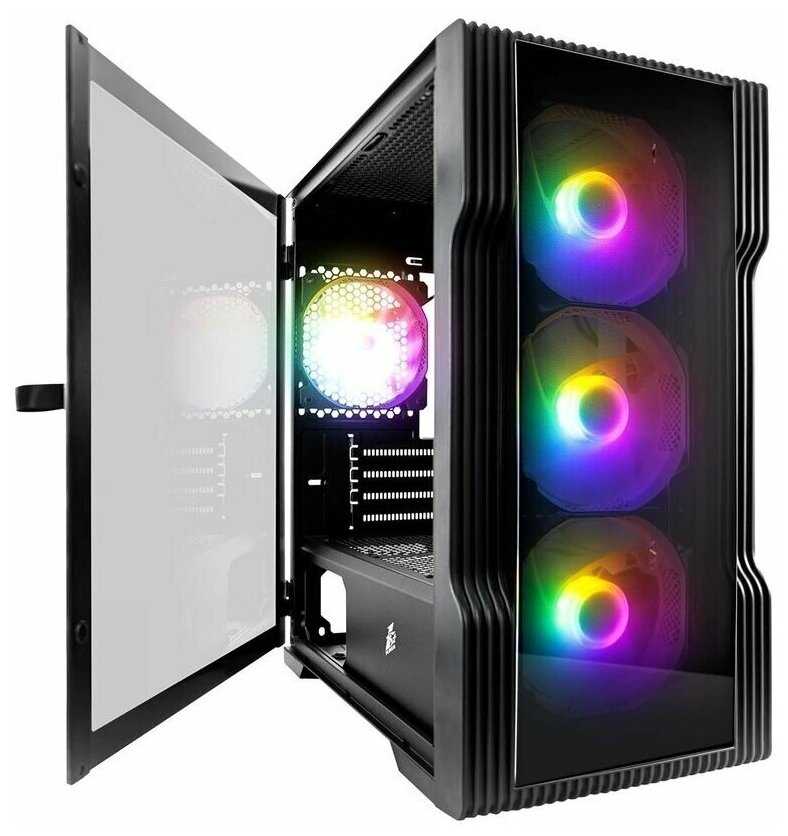 - + Хороший корпус. Материнская плата micro ATX входит отлично, видеокарта ASUS RTX 3060 вошла в притык, размер 309 мм. В комплекте 4е тихих кулера, красивая подсветка. Боковое стекло можно легко приоткрыть и температура железа сразу падает на 5-6 градусов.