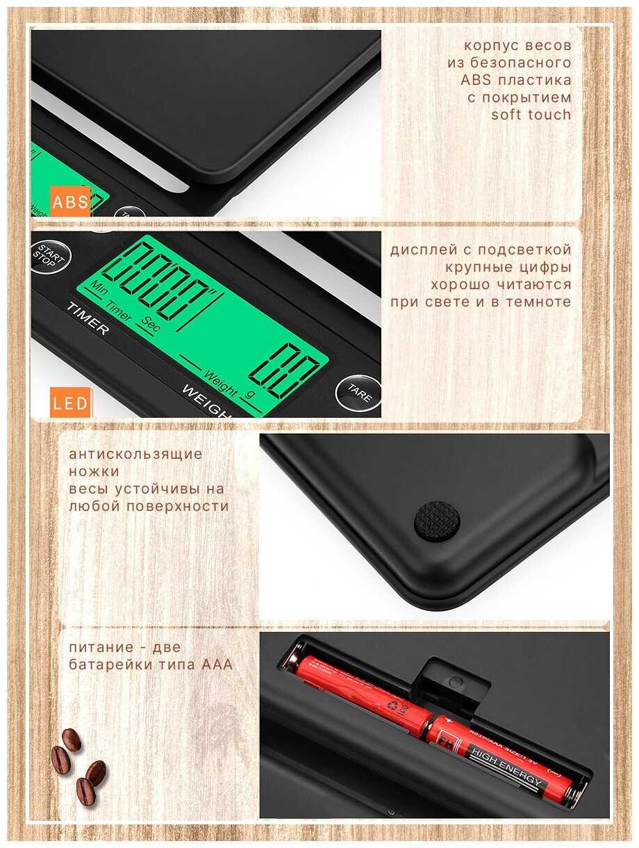 Характеристи 2Emarket Электронные весы для кофе с таймером