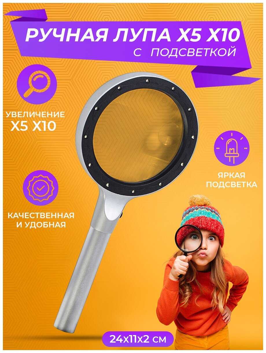 2Emarket Лупа ручная алюминиевая с подсветкой?