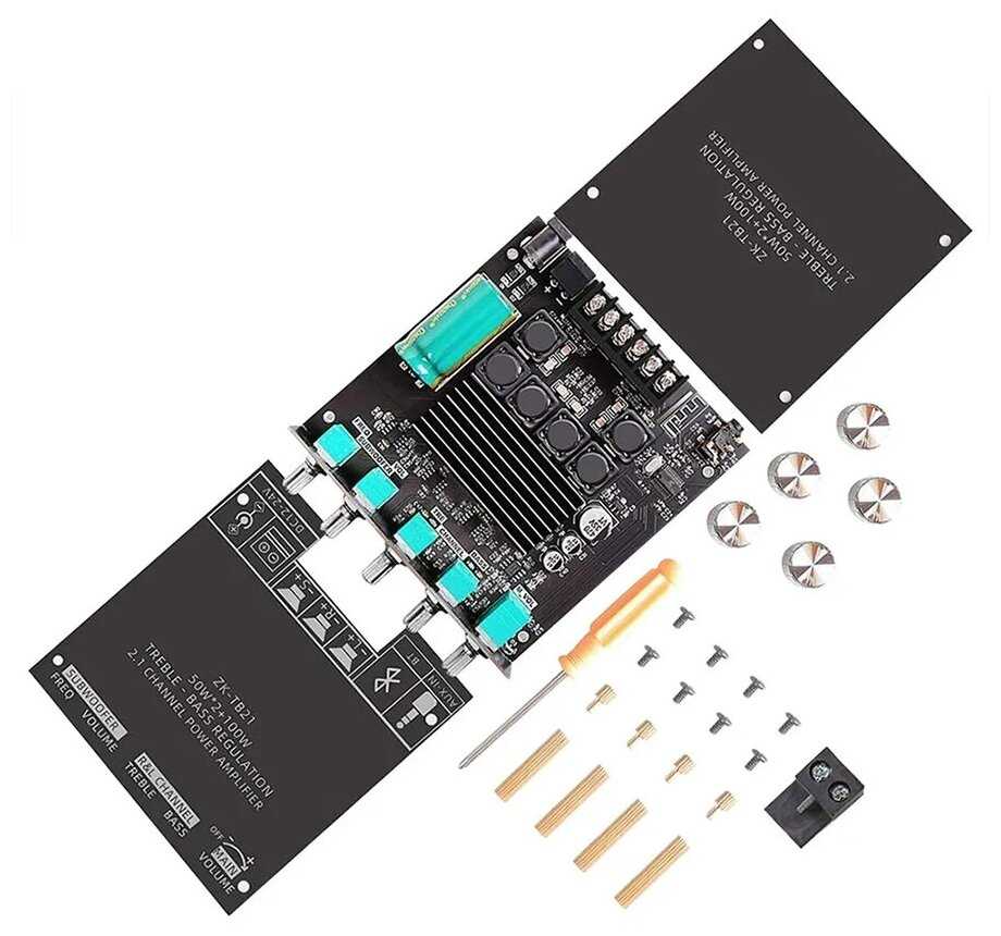 - + Спокойно раскачивает 40вт колонки в стерео и 100вт саб на 6 дюймов, если есть хороший блок питания на 24 Вольта, то я думаю он может больше, есть вопросы по охлаждению, но это мелочи, звук конечно не идеальный, но для его цены и при учете, что он выдает заявленную мощность, этого и не требуется, довольно громкий, подойдет как для просто прослушивания музыки, так и для домашнего кинотеатра, только не стоит пробовать Лоу Басс на нем скорее всего сгорит, был подобный, сгорел именно по этой причине