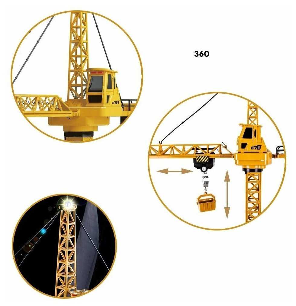 Дополняю отзыв (прошло 5 месяцев) : кран работает, аккумулятора хватает часа на три примерно полноценной игры. Леску заменили на капроновую нитку, т к не выдержала груз и порвалась. Несколько раз роняли. Истерлась зашита на проводке в стреле, замотали изолентой.
