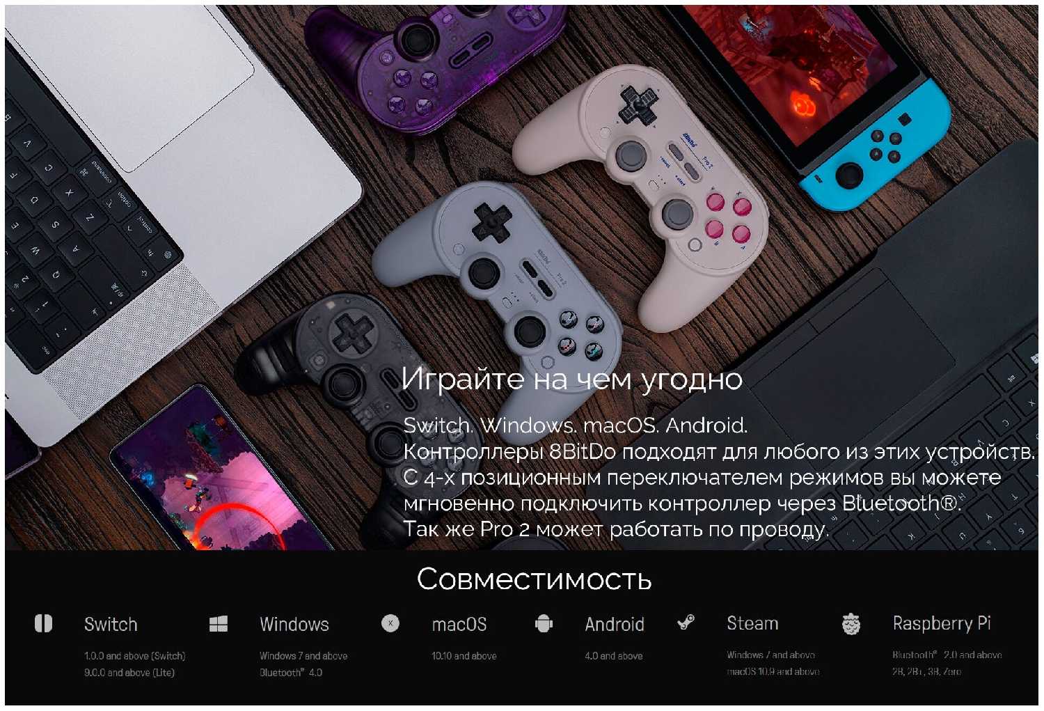 Список совместимых устройств : | Nintendo Switch, ПК с ОС Windows 10 и выше, Steam, устройства на Android |