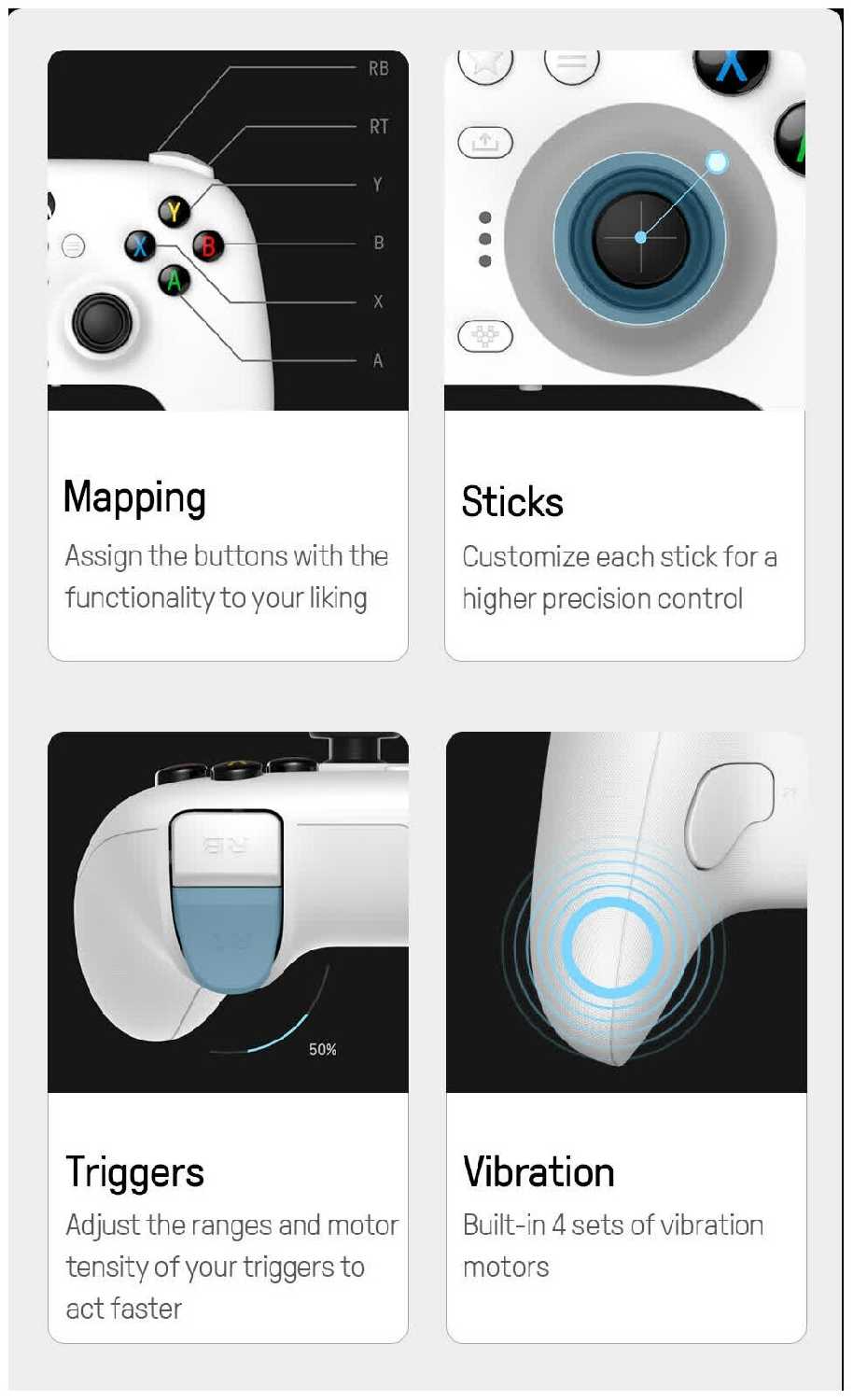 - + Удобный в использовании и настройке геймпад. Классные лепестки которые можно настроить под свои нужды