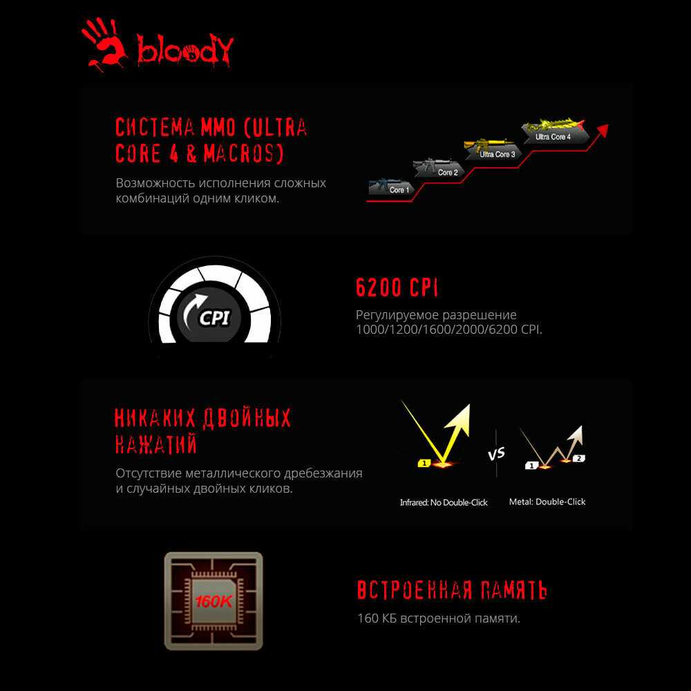 - Совместимость с тканевыми и гибридными ковриками (Bloody B-80, A4Tech X7-500MP) при калибровке через ПО.