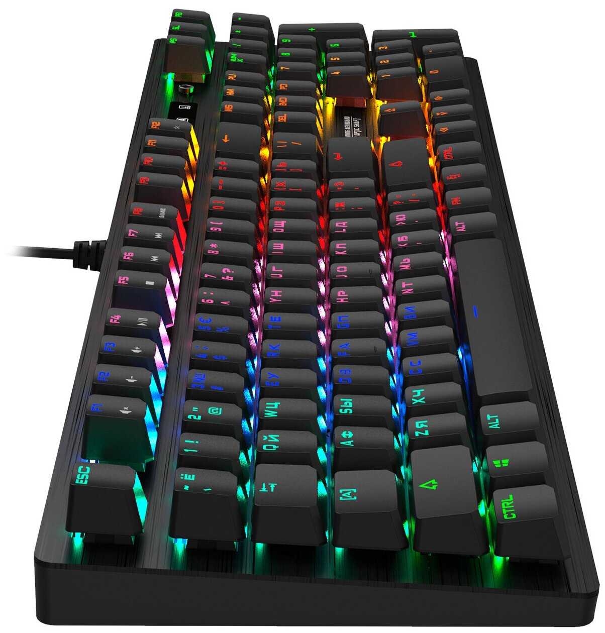 - + Отличная механическая за свои деньги клава. Подсветка шикарная, можно настроить с помощью софта подсветку и макросы.