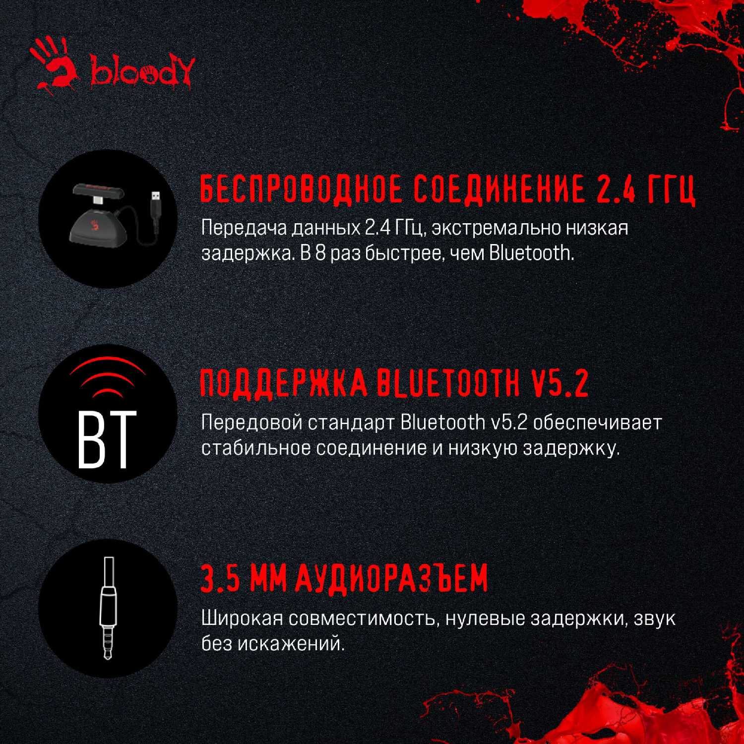 - Поддержка беспроводного подключения по радиоканалу 2.4 ГГц для игр с минимальной задержкой и по Bluetooth для мобильных устройств.