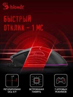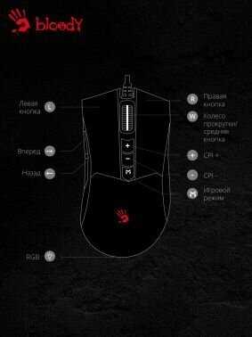 - 15 независимых светодиодов позволяют создавать сложные анимации через ПО BloodyEsports.