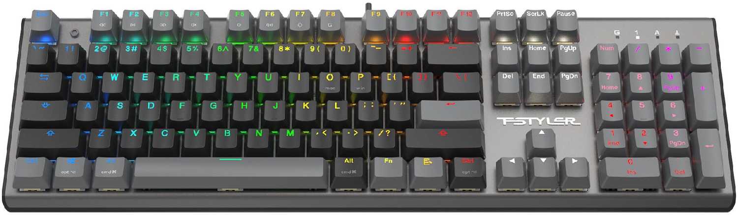 Первый раз перешёл на механику. Тактильно, конечно же, приятнее мембранки. Стандартная механическая клавиатура. Шумит средне. РГБ подсветка имеет 10 никому ненужных режимов, все эти режимы превращают эту клавиатуру в новогоднюю ёлку. Настроить определенный однотонный цвет подсветки функционально невозможно, в программном обеспечении этого тоже не реализовано. Собственно, само программное обеспечение максимально скудное. Есть два режима, которыми можно хоть как-то исправить ситуацию - статическая (всегда светит) РГБ подсветка и вообще её выключить, причем, выключается она не FN +F7, а FN + стрелочка вниз.