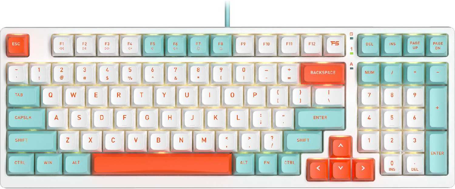 - Компактный форм-фактор 98 клавиш с нампадом экономит место, сохраняя полнофункциональность, включая стрелки и функциональные клавиши.