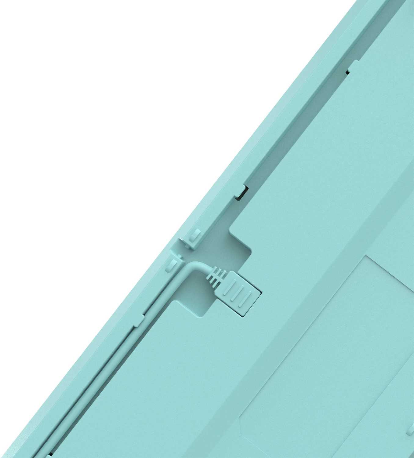 - + Прикольная геймерская клава. С хот свапом, что важно. И с приятным тайпингом. Клавиши с двойным литьем. Снизу есть канал для вывода провода на левую или правую сторону клавиатуры. Раньше нигде такого не встречал. Провод длинный, 1.8 метра. Ножки массивные, не должны сломаться.