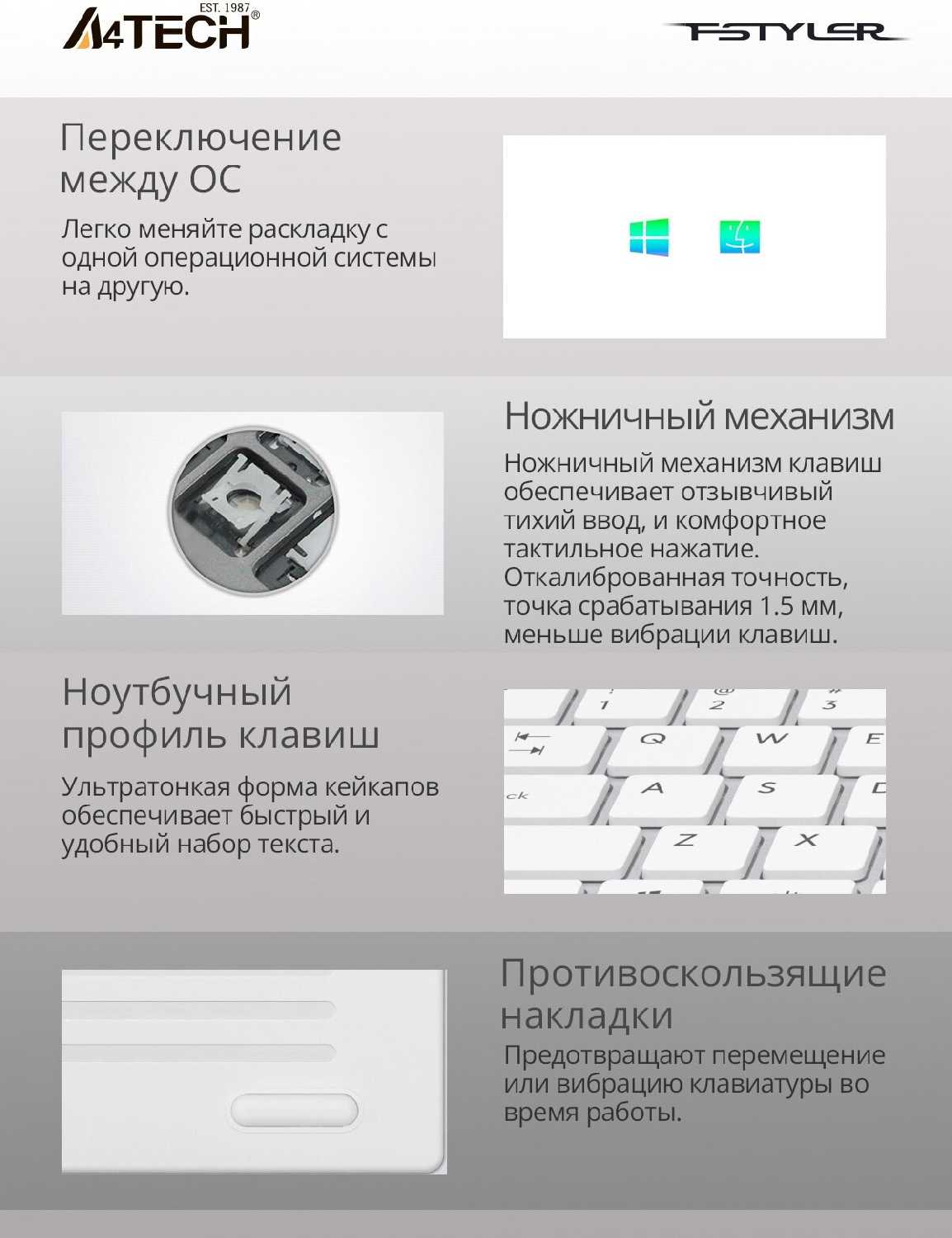 - Поддержка мультимедийных комбинаций (регулировка громкости, управление плеером) без необходимости установки драйверов.
