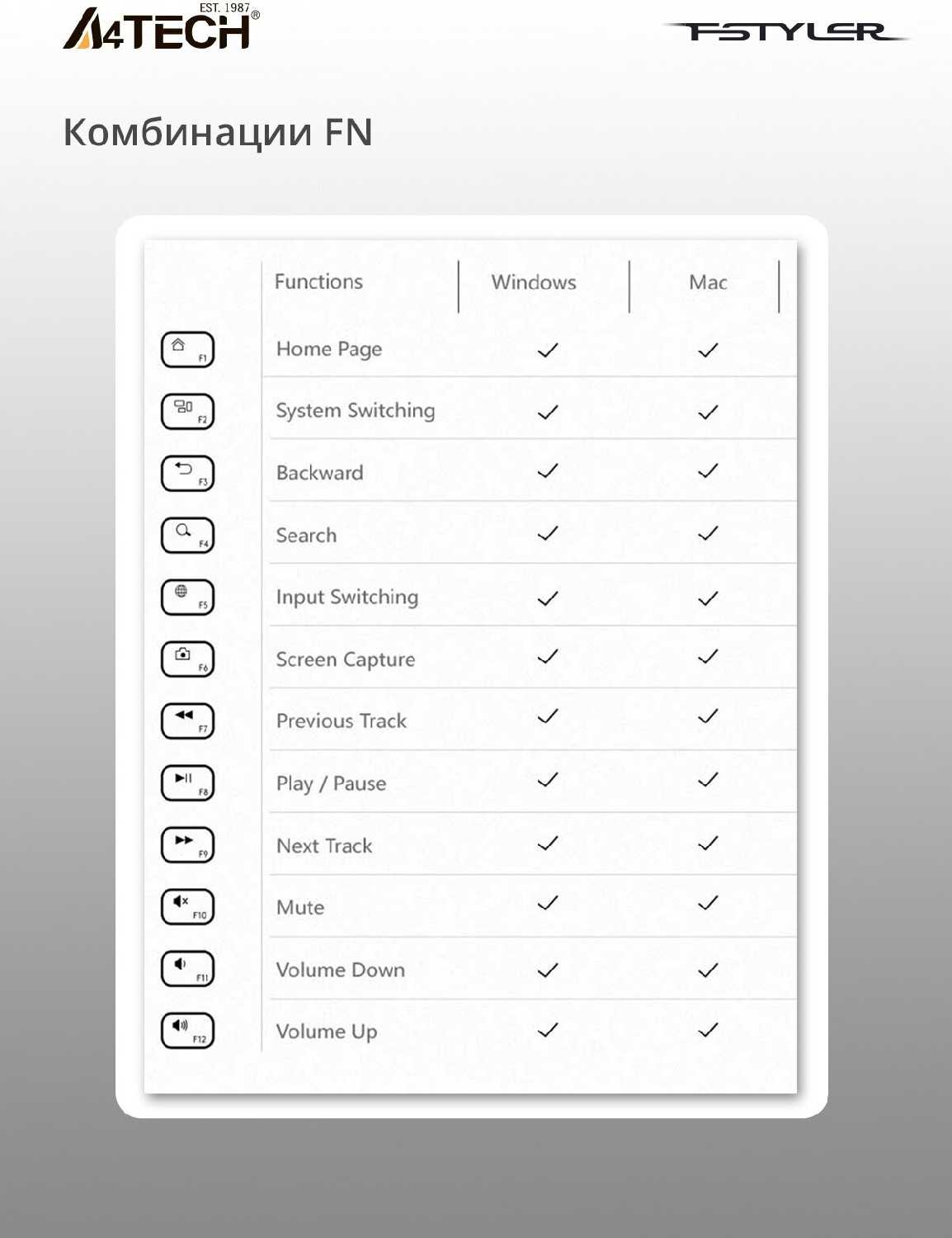 - Раскладка клавиш адаптирована под обе системы, включая функциональные клавиши (например, Media Control).