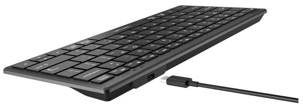- + Стильная, четкий ход клавиш, почти не слышно нажатий. Очень приятно набирать текст. Размер прекрасен после огромной клавиатуры на столе появилось место! Кнопки удобные, не маленькие. Есть доп. функции мультимедийные. Тяжеленькая на столе лежит основательно, не ерзает. Кабель USB/mini TypeC это очень удобно, можно заменить на другой, кому длина или цвет не нравится.