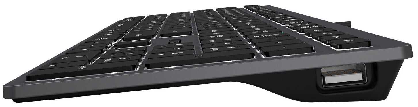 - + Отличная клавиатура для работы что надо. Удобная эргономика, крупный шрифт на клавишах, приятная, переключается мак-винда, очень удобно печатать. Продуманны два usb порта которые не только заряжают но и читаю флешки, это очень круто и удобно. Внешний вид прятный, довольно стильный. Приятная подсветка, не регулируется да это и не надо она совсем не мешает, яркость что надо. Клавиши не очень тугие и не шумные, они крупные островные и удобные с крупным шрифтом, т.е. для работы что надо. Еще привыкнуть немного и вообще я думаю лучший вариант лично для меня. Вообщем нормальная клавиатруа для работы.