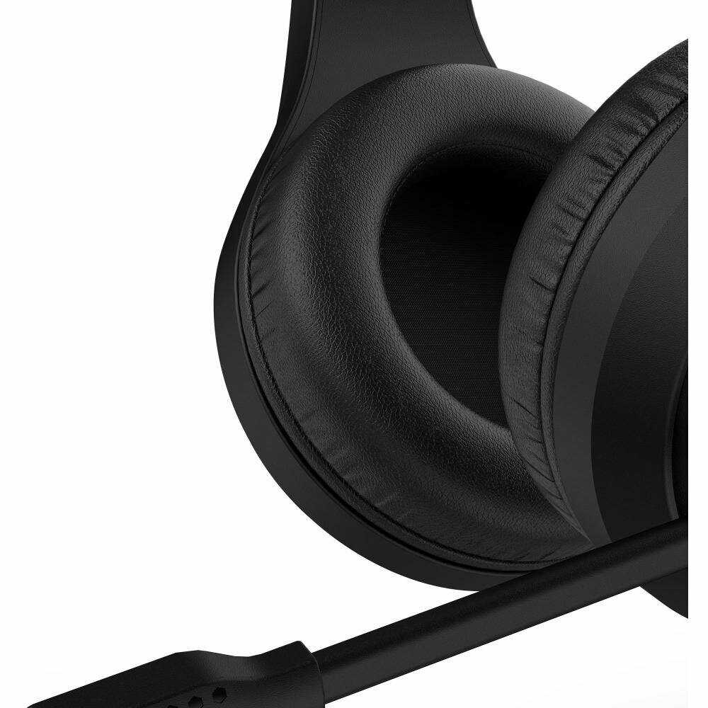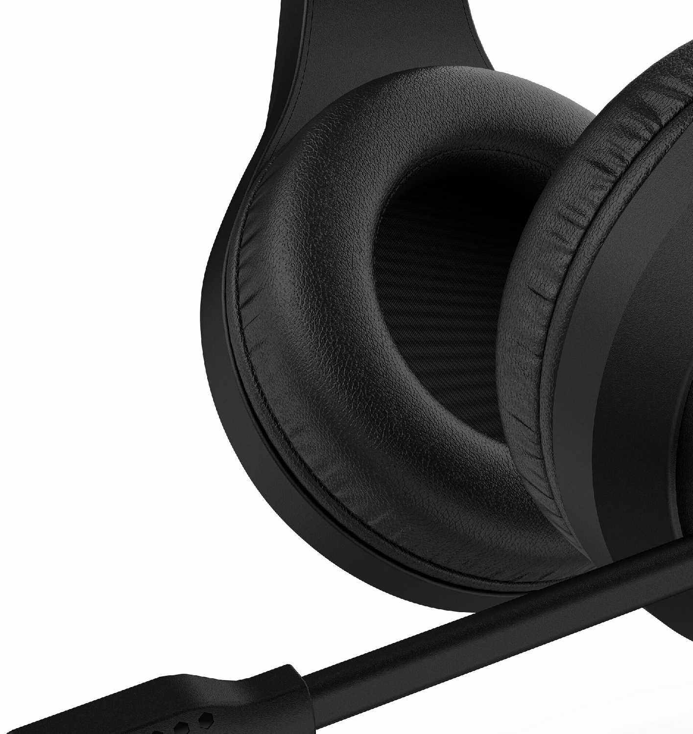 - Амбушюры из кожзама плотно прилегают к ушам, блокируя внешние шумы.