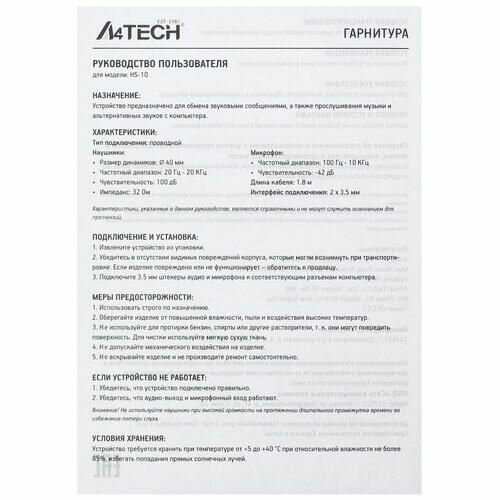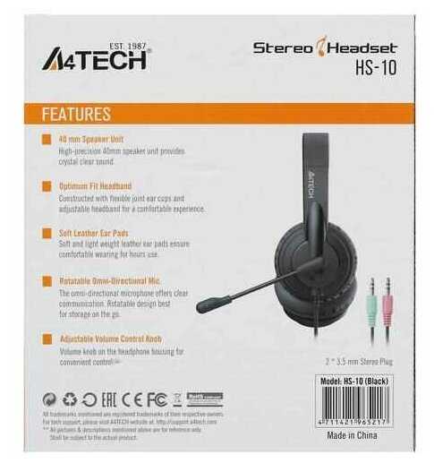 Комплектация : | Наушники с микрофоном A4Tech HS-10документацияфирменная упаковка |