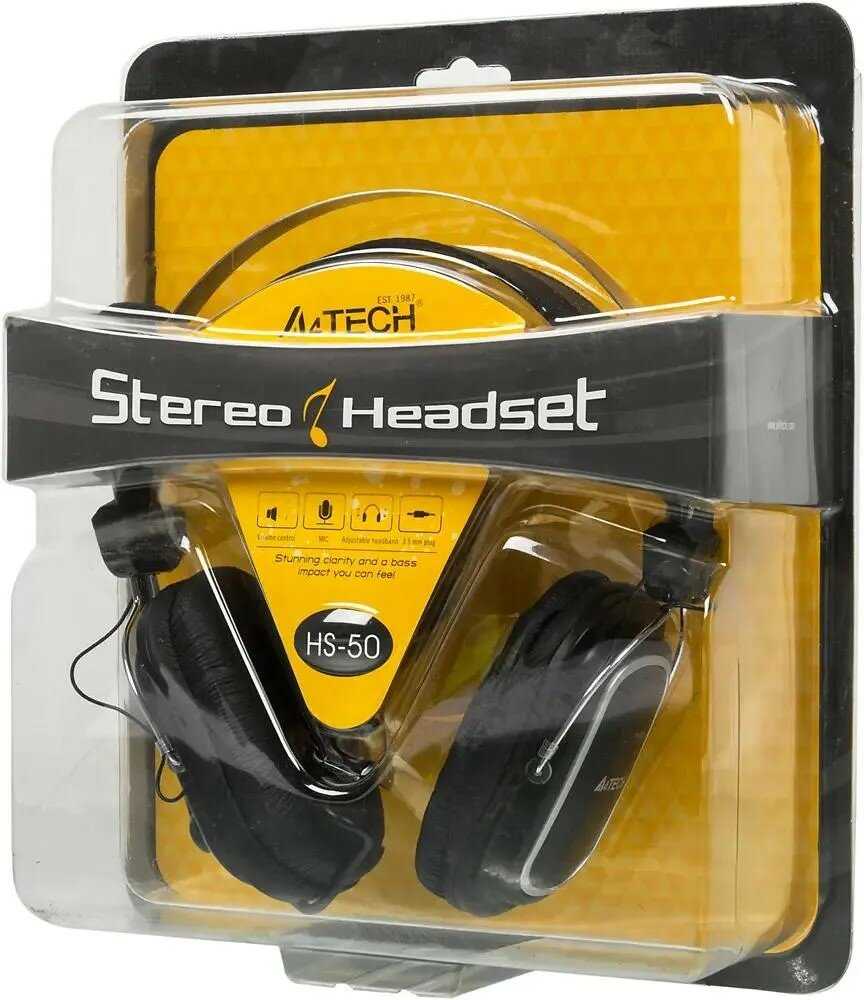 Комплектация : | Гарнитура A4Tech HS-50 черный 2.4м мониторные |