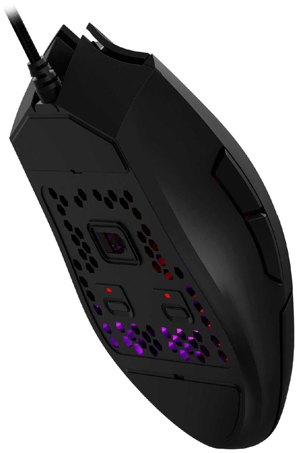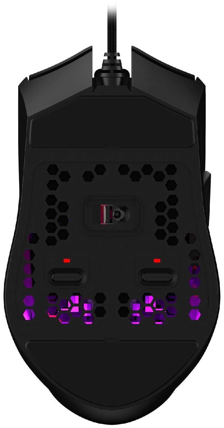 Мышь имеет разноцветную подсветку, которая, по умолчанию, переливается разными цветами. Через программное обеспечение можно настроить режимы свечения или полностью отключить его. Подсветка не является яркой и навязчивой, по мнению большинства пользователей, она не отвлекает во время игры или работы. Верхняя крышка полупрозрачная, что создает интересный визуальный эффект со светящимися внутренними сотами. -