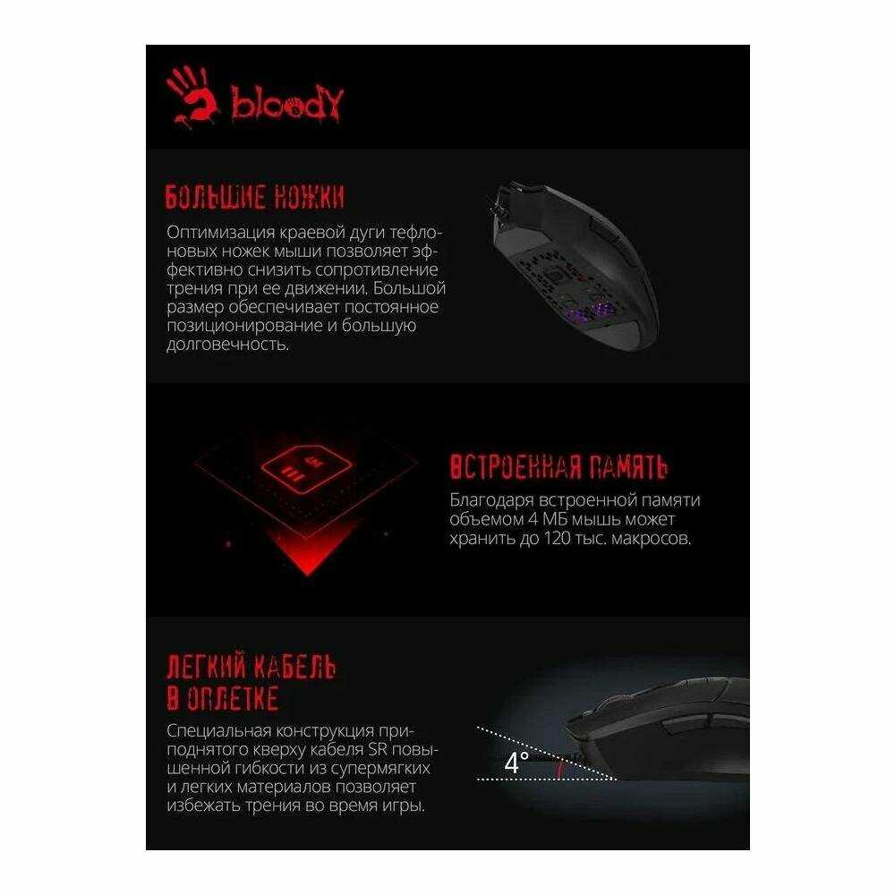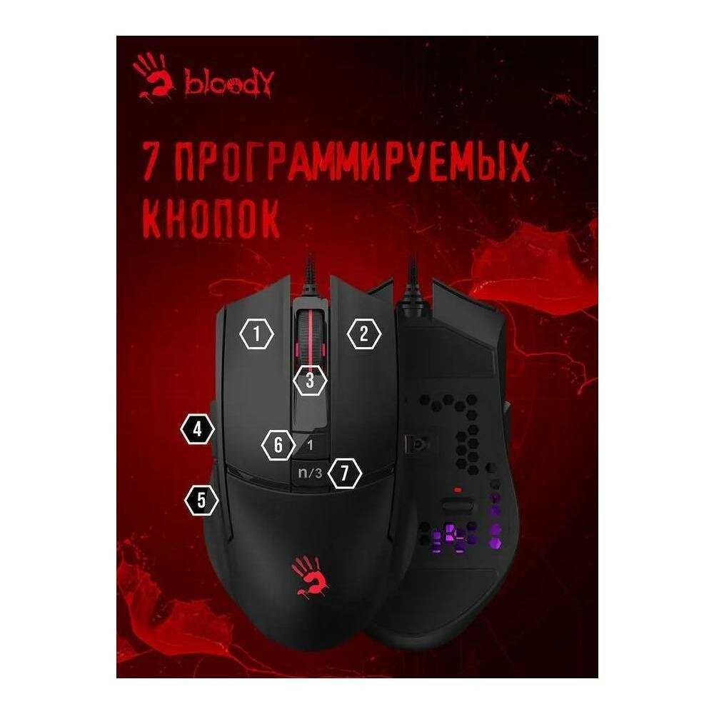 Функциональность программного обеспечения и макросов. Программное обеспечение Bloody, несмотря на устаревший интерфейс, предоставляет расширенные возможности для настройки. Активированные режимы Ultra Core 3 и 4 позволяют назначать сложные макросы и переназначать функции на все 6 кнопок, включая боковые. Настройки, включая макросы и параметры подсветки, сохраняются во встроенной памяти мыши объемом 4 МБ, что позволяет использовать персонализированные профили на других компьютерах без необходимости переустановки драйверов. Подсветка является настраиваемой, её можно отключить полностью или выбрать один из нескольких режимов свечения через софт. Некоторых пользователей смущает ограниченное количество предустановленных режимов подсветки (всего 5) и невозможность тонкой настройки статического цвета для всего корпуса — подсветка преимущественно работает в режиме плавного переливания цветов.