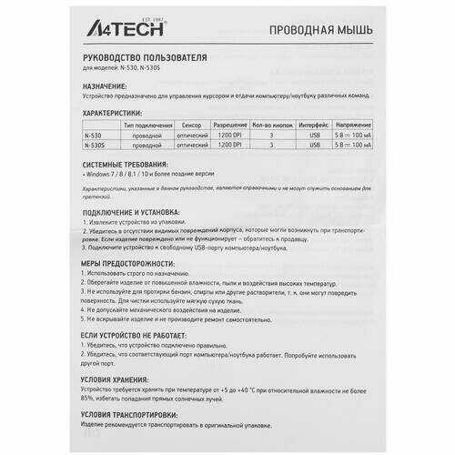 Отзывы о Мышь A4Tech N-530
