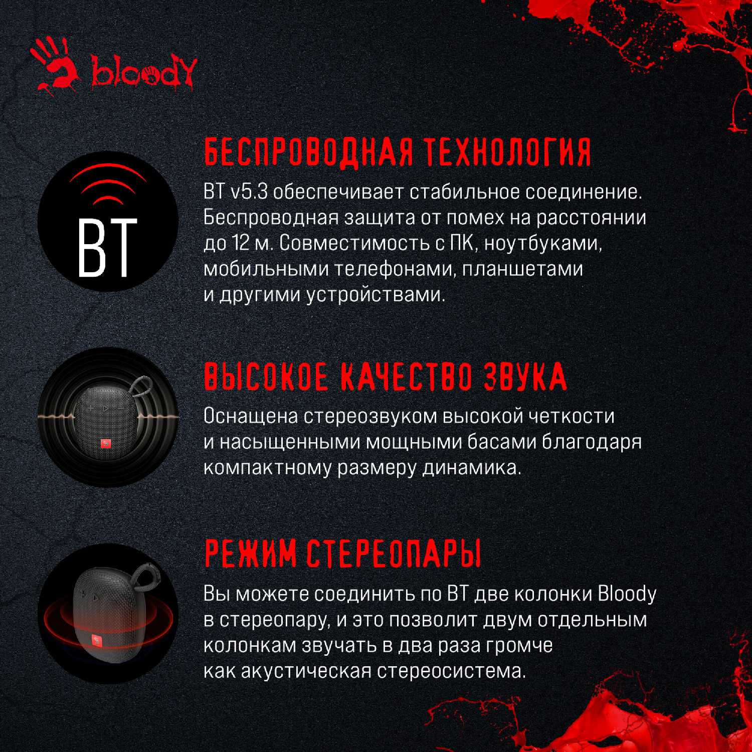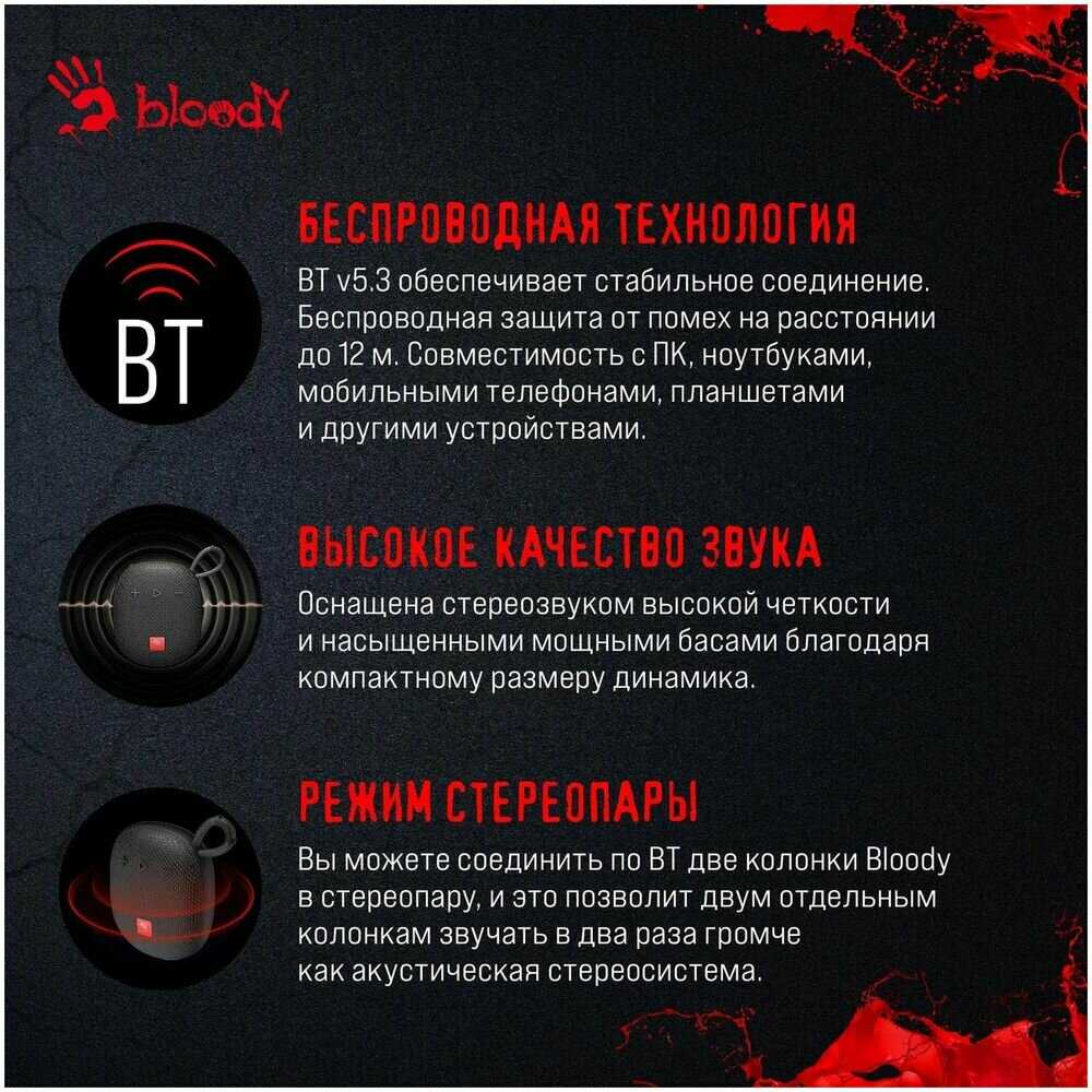 Отзывы о Колонка портативная A4Tech Bloody S3 Carry 5.5W 1.0 BT 1200mAh (S3 CARRY BLACK)