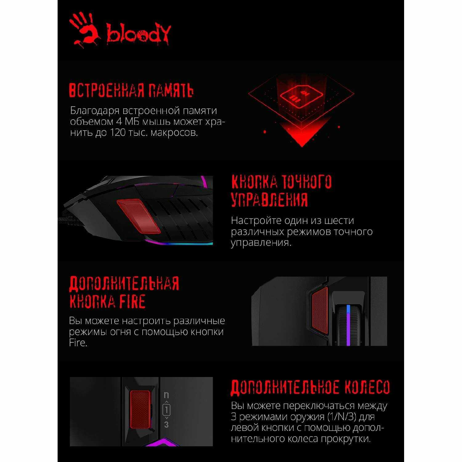 - Индивидуальная настройка RGB для каждого из 5 светодиодов через ПО Bloody 7.