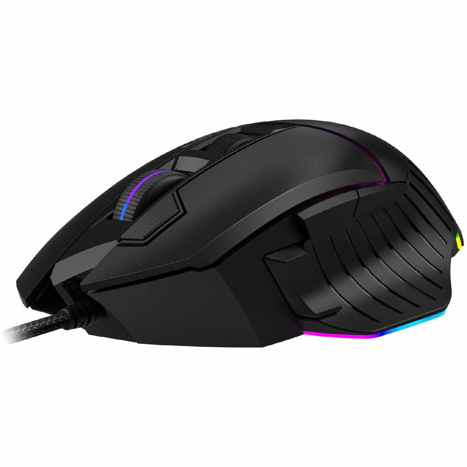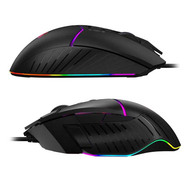 Удобная мышь. Имеется куча настроек подсветки и макросов. Кабель в оплётке и металлические глайдеры