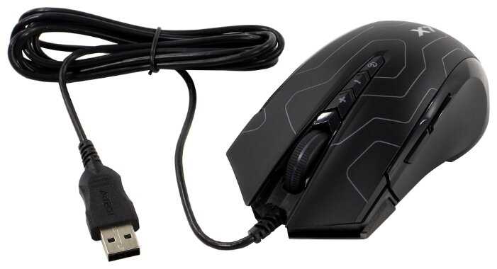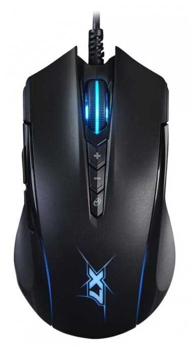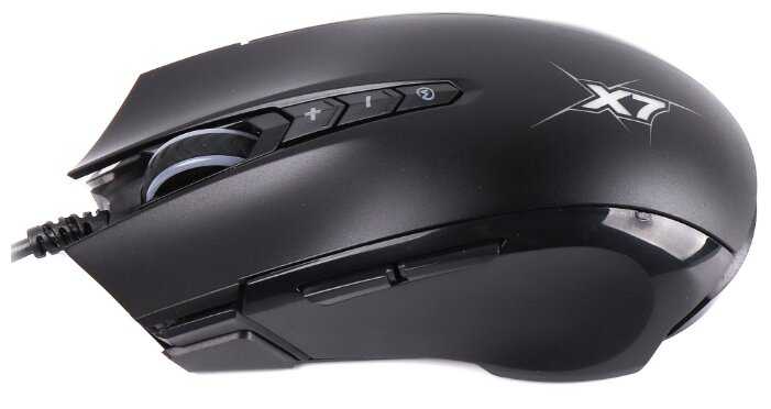 Мышь учень понравилась. Пользуюсь неделю. В руке лежит удобно. До этого пользовался и до сих пор пользуюсь дома A4 V-Track F4 (за все время пользования поменял разъем). Кому мешает подсветка (мерцание) логотипа X7 (колесо прокрутки всегда подсвечено синим цветом и не мерцает) - есть ПО X7 Oscar Lite (качаем на сайте производителя) - задать назначение кнопок, чувствительность (dpi), можно полностью отключить или поменять яркость подсветки, частоту смены подсветки поменять нельзя (может я плохо смотрел и искал, но не нашел). За эти деньги вполне хорошая и достойна мышь.