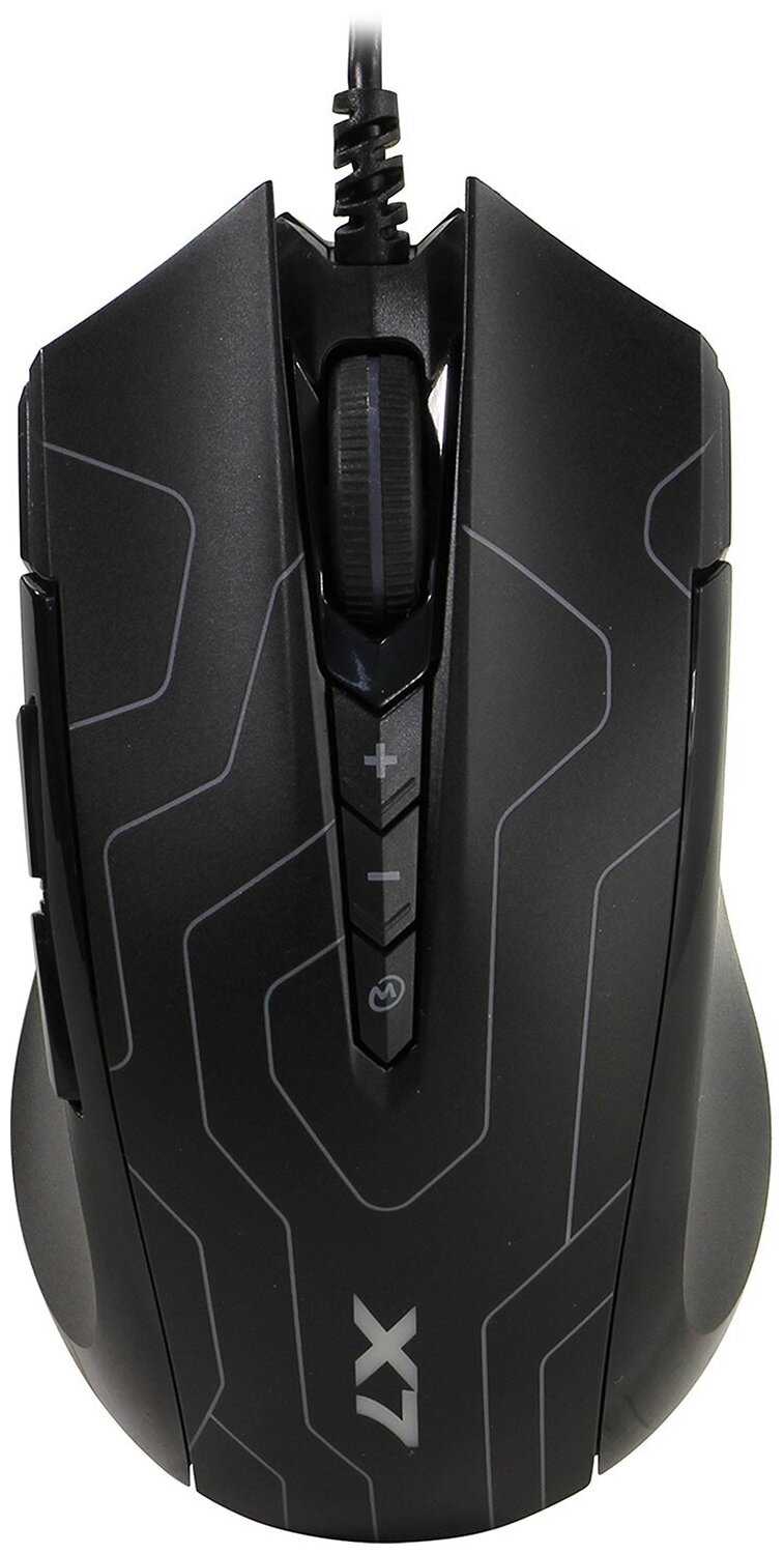 Боковые кнопки расположены выше уровня клавиатуры и не задевают её (о, счастье!) - - "X7" светится семью разными цветами с интервалом в 1 секунду. Смотрится довольно посредственно. Скролл при этом светится одним цветом, в зависимости от установленного dpi.