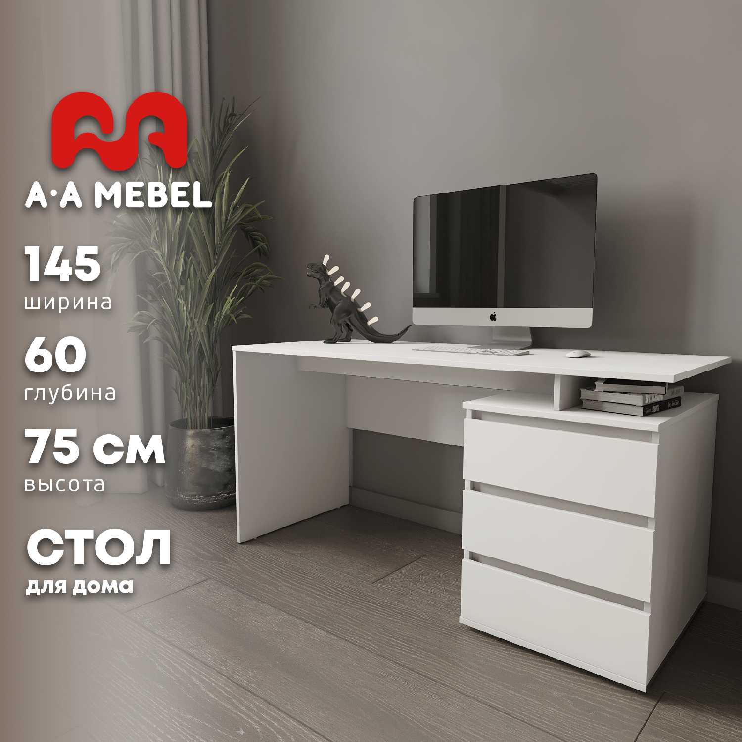 - + Отличный стол, большой, лаконичный, удобные ящики. Покупали подростку в комнату, очень доволен. Цена на момент покупки более чем приемлемая для такого размера.