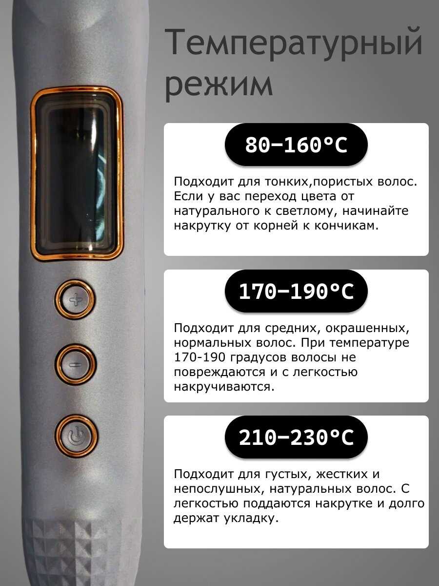 | Назначение : | выпрямление, завивка, спиральная укладка, укладка |