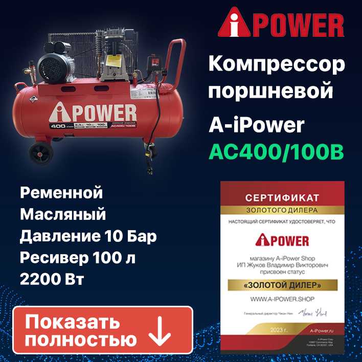 10 отзывов пользователей o A-iPower Компрессор поршневой AC400/100B