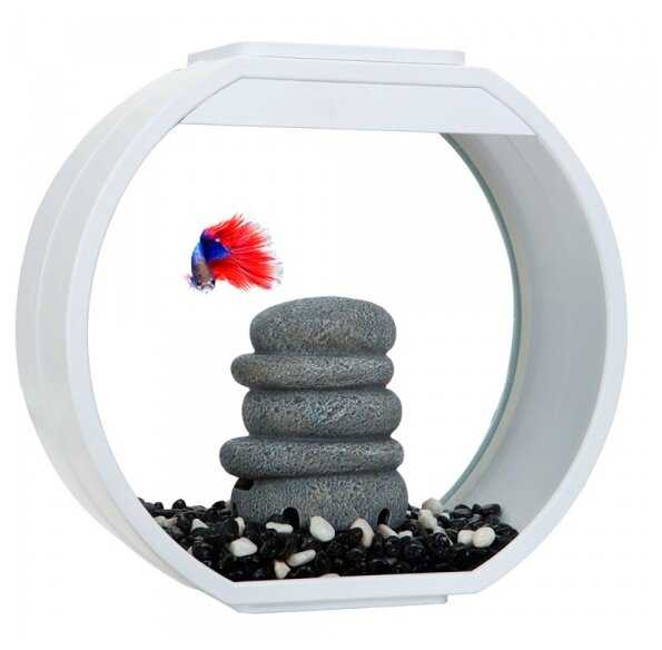 На самом деле объем аквариума 7.5литра. Для рыбки петушка вполне хватает места и оборудования, но если подселить другую рыбу, отдельно надо покупать компрессор. конструкция аквариума предусматривает аккуратно спрятать трубочку для воздуха.