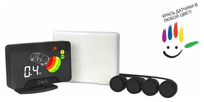 Особенности : | запоминание выносных элементов автомобиля, изменение минимального расстояния реагирования на препятствия, окрашиваемые датчики, принудительное отключение передних датчиков, указание направления препятствия, управление громкостью |