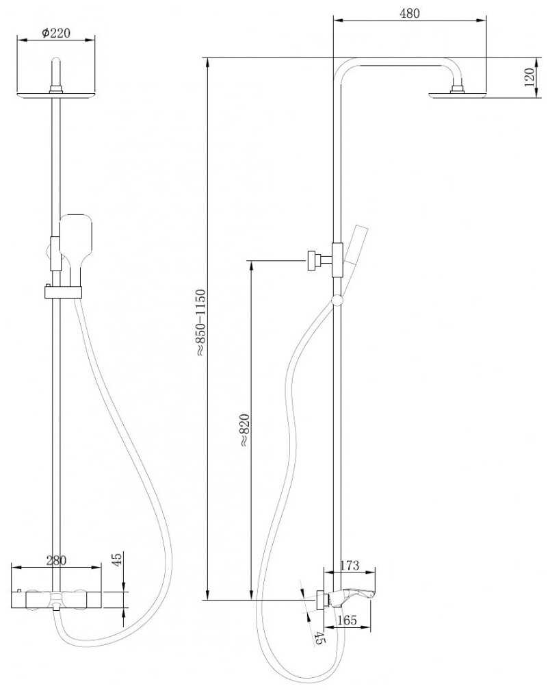 Высота стойки для душа : | 1150 мм |
