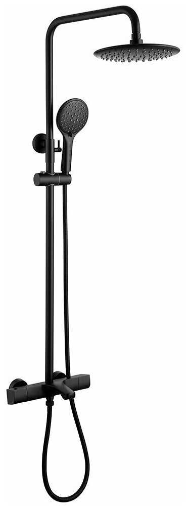 Комплектация : | верхний душ, держатель лейки, душевая стойка, душевая штанга, излив для набора воды, лейка, смеситель, шланг |