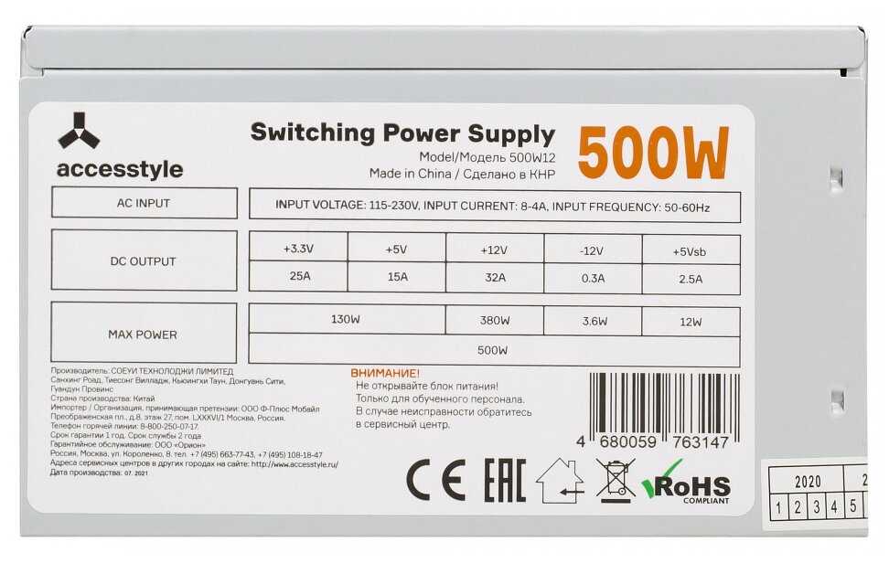 Лучшие цены сегодня на AccesStyle 500W12 500W
