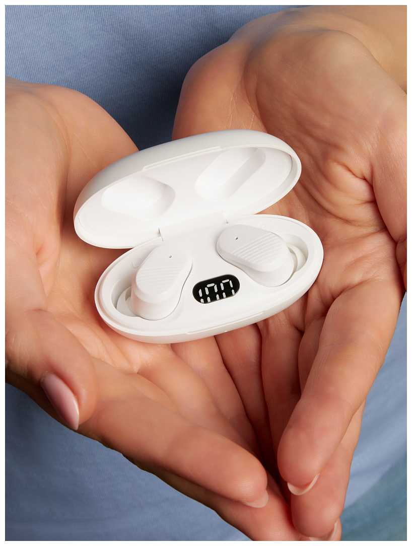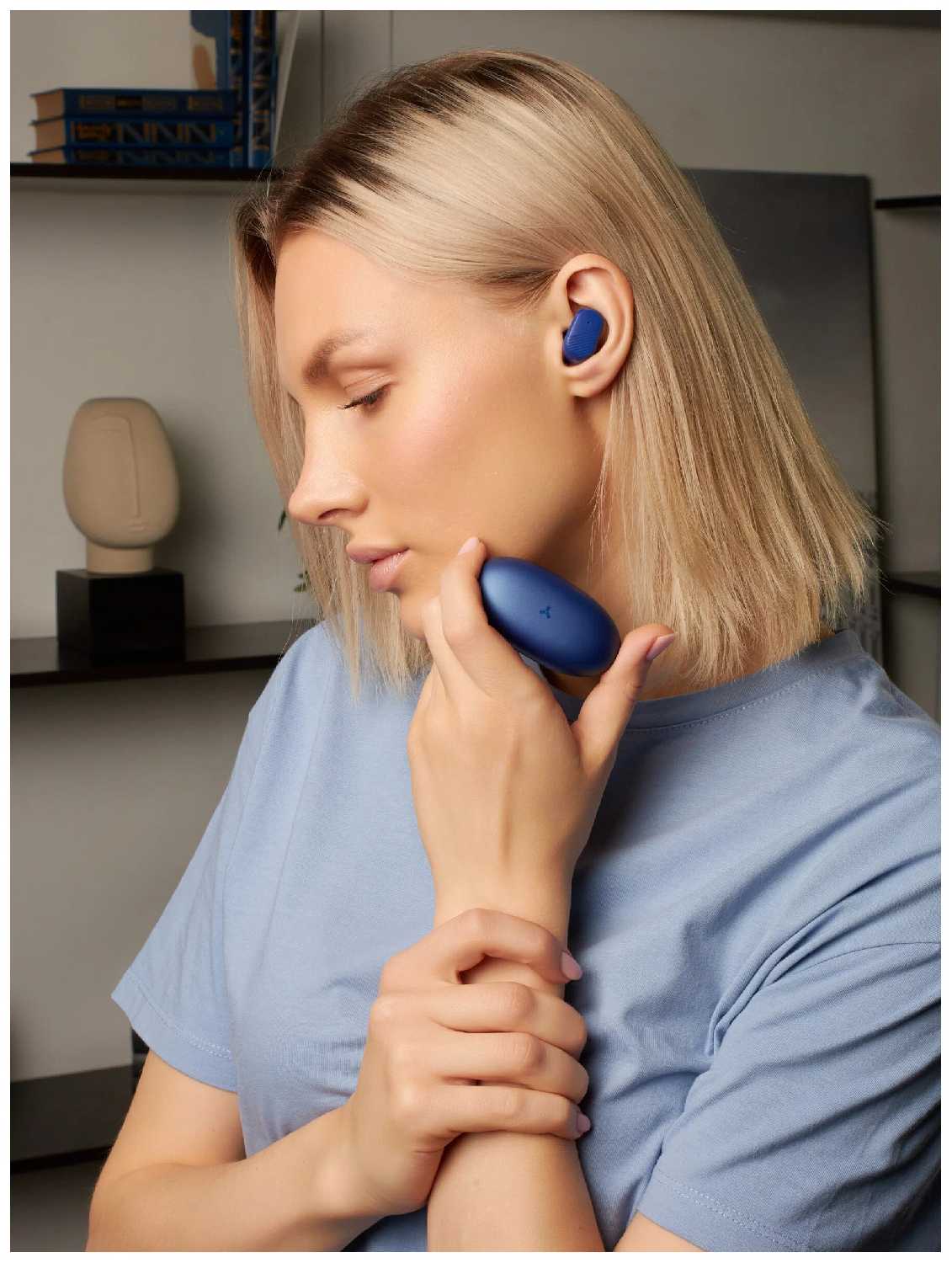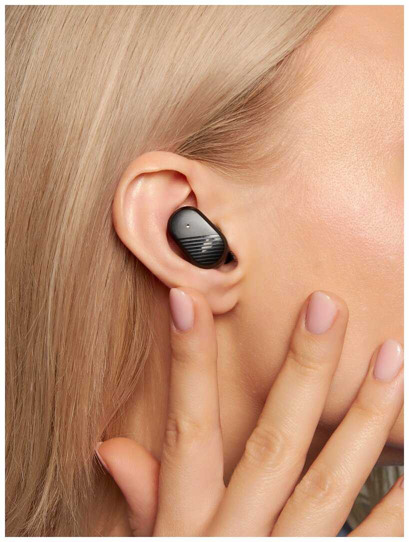 - Компактные габариты (сравнимы с детской игрушкой) и вес менее 5 г на каждый наушник обеспечивают комфорт даже при длительном ношении.