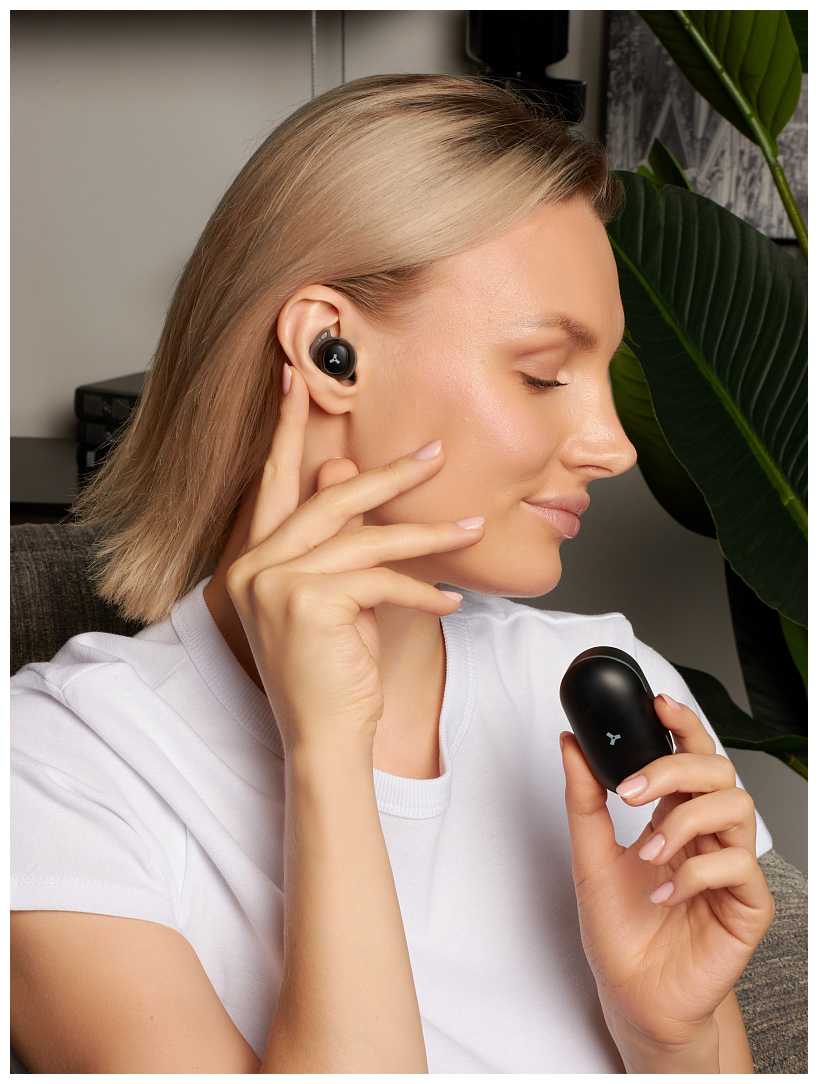 - Вес каждого наушника — 4.5 г, что снижает давление на ушную раковину при длительном использовании.